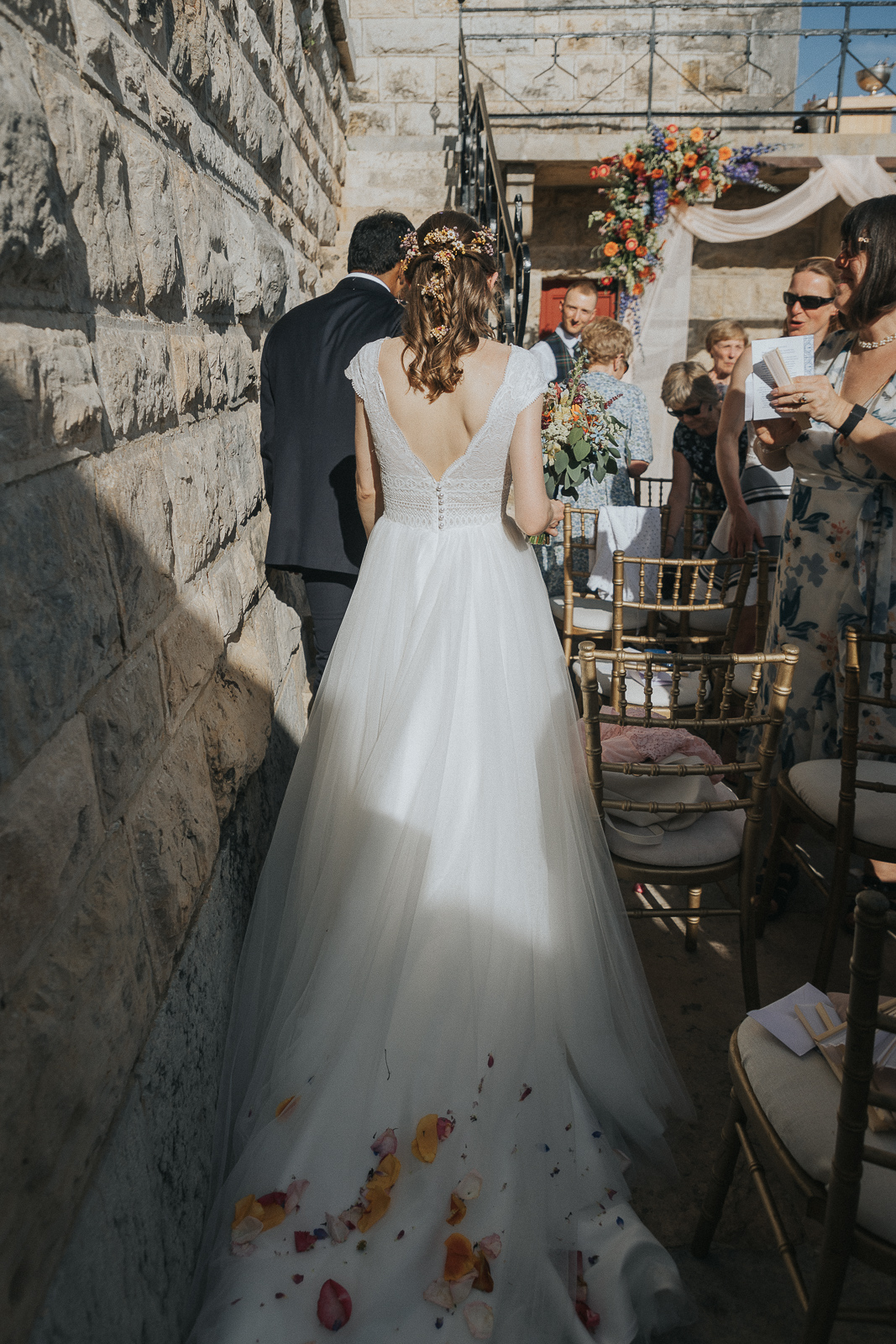 The day started with a lively traditional dance led by the groom before the ceremony. A joyful moment that united everyone in laughter and energy. The symbolic ceremony, officiated by a close friend, was deeply emotional and full of love, not only between the couple but from everyone present.